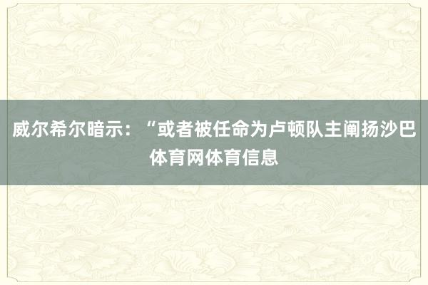 威尔希尔暗示:“或者被任命为卢顿队主阐扬沙巴体育网体育信息