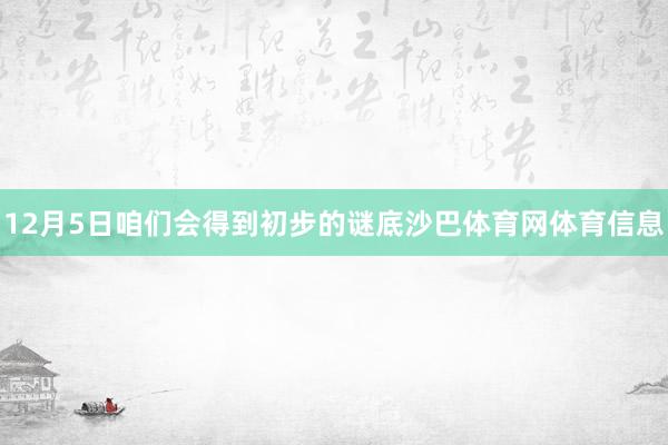 12月5日咱们会得到初步的谜底沙巴体育网体育信息