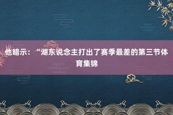 他暗示:“湖东说念主打出了赛季最差的第三节体育集锦