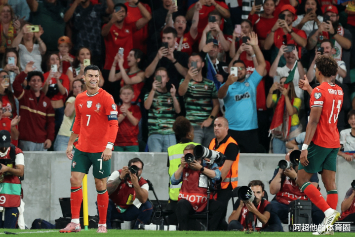 葡萄牙是这整夜独一莫得告成的权门球队,而且如故在跨越的情况下被敌手绝平。开场第8分钟,索博斯洛伊领先助攻绍洛伊破门。立时40岁的C罗挺身而出,总裁第22分钟和半场补时阶段2次精确跑位包抄推射便献艺了梅开二度;而况以41球的世初赛进球数加冕历史第一,个人进球数来到948球,相似是第一。